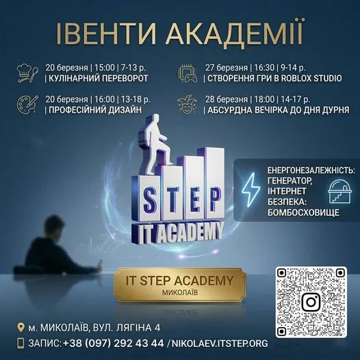 У програмі: Переходимо від гри до розробки! Навчимося моделювати 3D-світи та програмувати власну гру в Roblox.