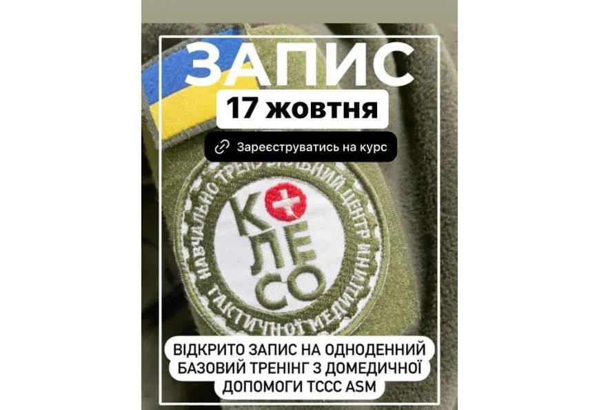 Відкрито запис на одноденний базовий тренінг з домедичної допомоги ASM TCCC на 9 квітня 2025 року.