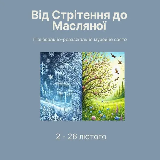 З 2 до 26 лютого 2026 року музей запрошує учнів початкової школи на пізнавально-розважальну інтерактивну екскурсію «Від Стрітення до Масляної».