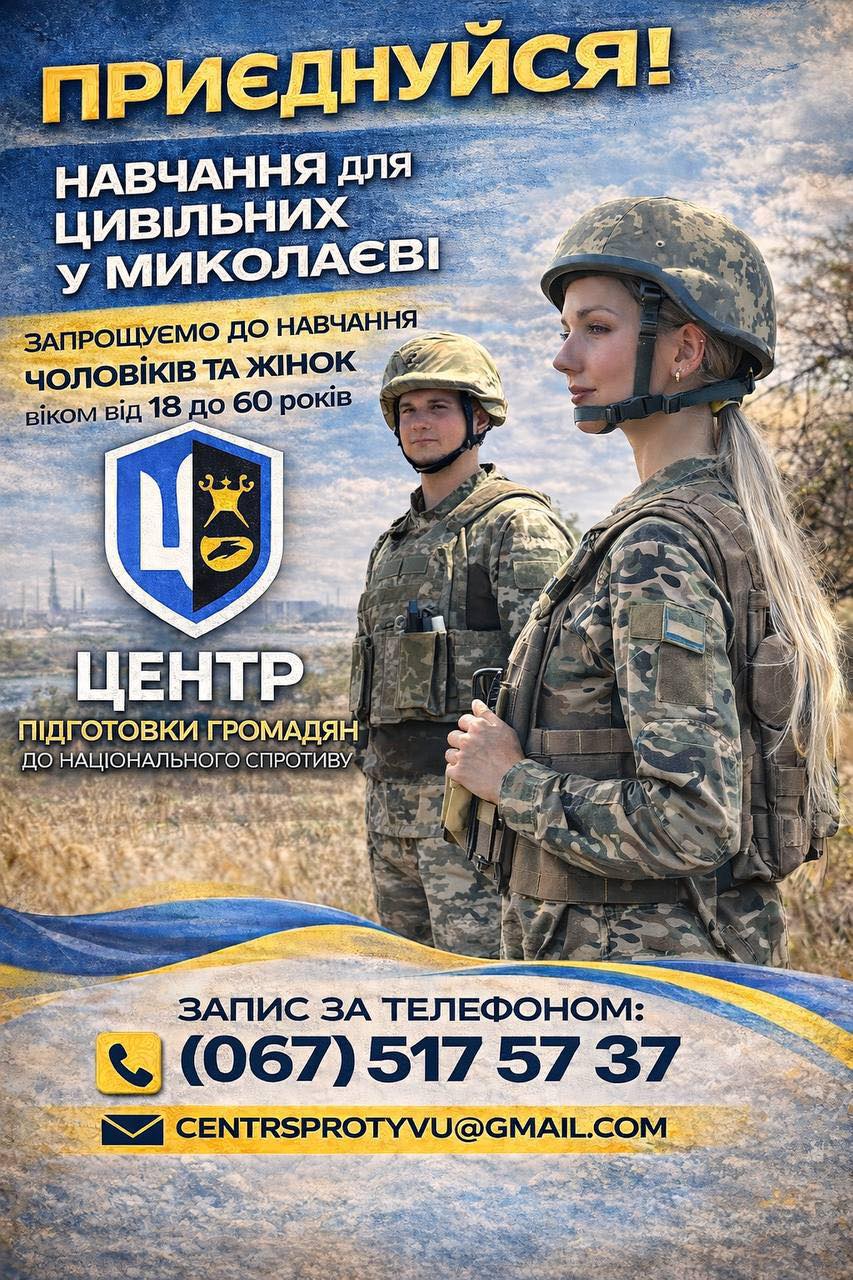 Миколаївський обласний Центр підготовки громадян до національного спротиву запрошує цивільних громадян долучитися до навчання у квітні!
