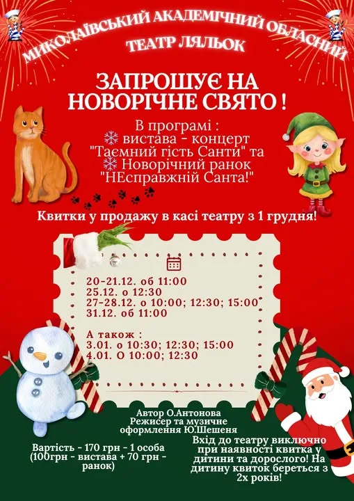 📌70 грн – вартість квитка на Новорічний ранок “НЕсправжній Санта”.