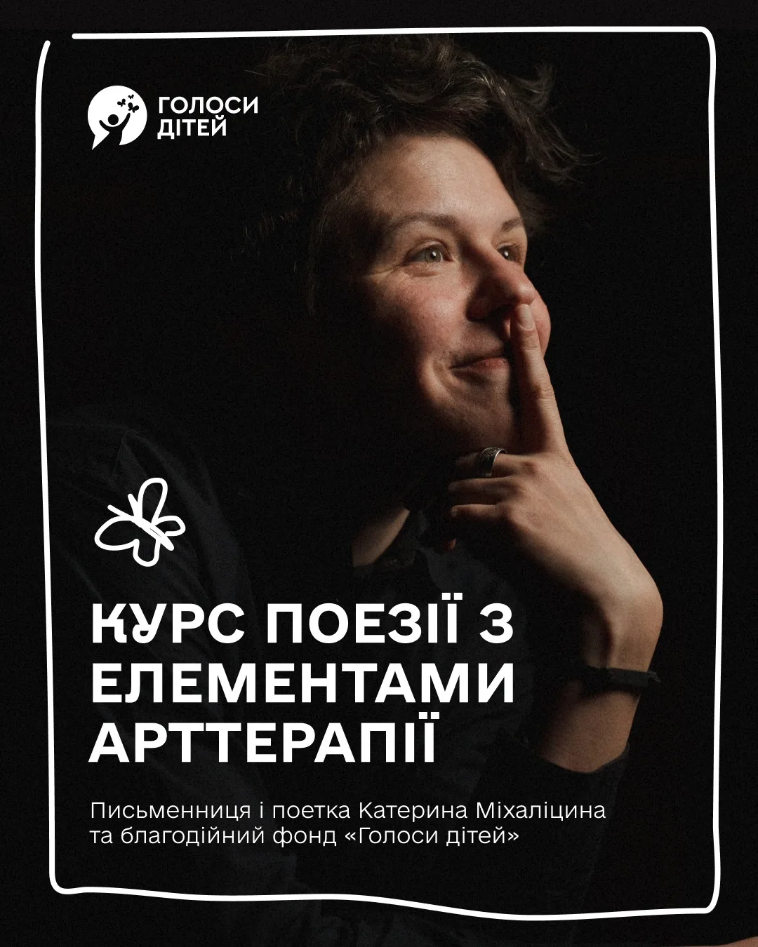 Фонд “Голоси дітей” спільно з українською письменницею та перекладачкою Катериною Міхаліциною запускають новий курс поезії з елементами арттерапії для підлітків 13–17 років. Ми шукатимемо відповіді на те, звідки береться потреба писати, як війна змінює спосіб висловлюватися за допомогою поезії і чому наші переживання знаходять вихід у віршах.