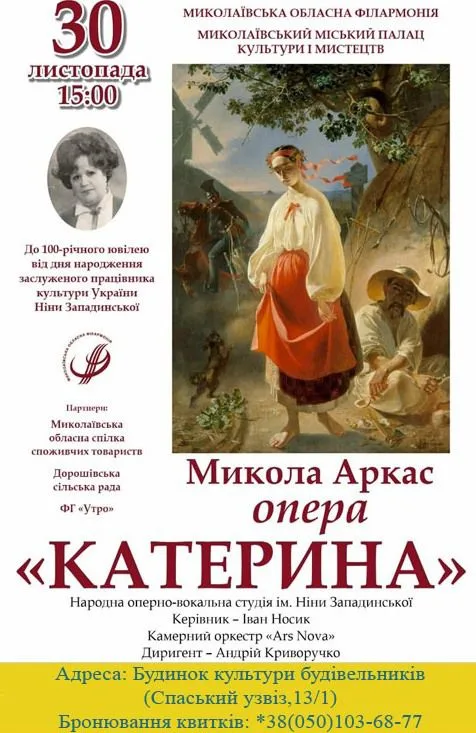 🗣️До 100-річного ювілею від дня народження заслуженого працівника культури України Ніни Западинської відбудеться прем’єра опери відомого Миколаївського композитора Миколи Аркаса «Катерина»