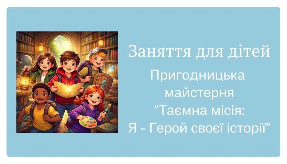 🧒🏻👧🏼Дітей до 13 років запрошують на цікавий та захоплюючий захід – Пригодницька майстерня «Таємна місія: Я – Герой своєї історії».