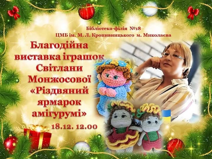 🗣️Відкриття благодійної виставки «Різдвяний ярмарок амігурумі» іграшок майстрині Світлани Монжосової