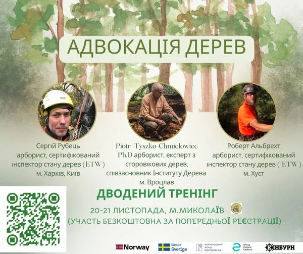📌Програма тренінгу включатиме теоретичні модулі про будову й функціонування дерев, діагностику дереворуйнуючих грибів, типові помилки догляду, обрізки та вплив міського середовища. Практична частина передбачає демонстрації біля дерев, показ технік інспекції крони та приклади роботи на висоті.