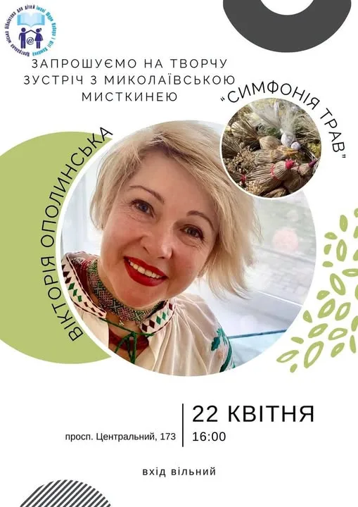 ЗАПРОШУЄМО НА ТВОРЧУ ЗУСТРІЧ З МИКОЛАЇВСЬКОЮ МИСТКИНЕЮ