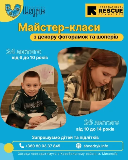 Команда БО «Щедрик» запрошує юних миколаївців на серію творчих майстер-класів, спрямованих на самовираження, підтримку та цікаве дозвілля.
