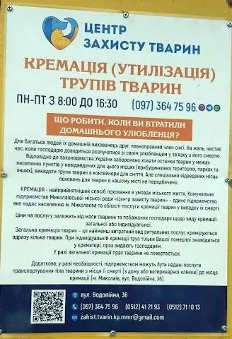 Керівництво Миколаївської міської ради надало можливість мешканцям Миколаєва безоплатно скористатися послугою кремації домашніх тварин у Центрі захисту тварин.